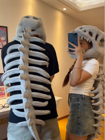 Stüdyo çekimi için aldık ve fotoğrafçı bile kostüme bayıldı. 3 boyutlu kemik detayları o kadar gerçekçi duruyor ki fotoğraflarda efekt var zannedersiniz. Instagram'a koyduğum an DM kutum patladı, herkes link istiyor. Çok havalı duruyor gerçekten.